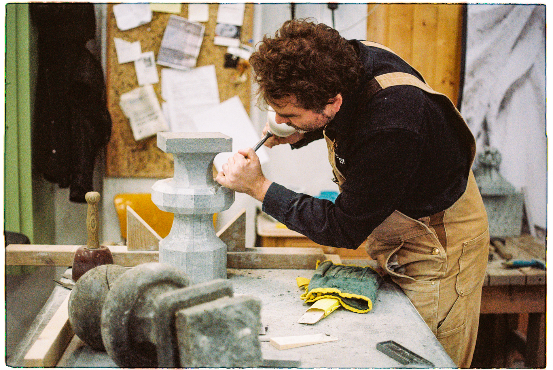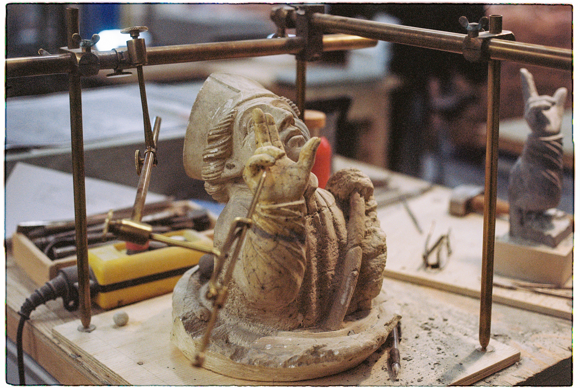 Håndverkere ved nidarosdomen restaureringsarbeider
